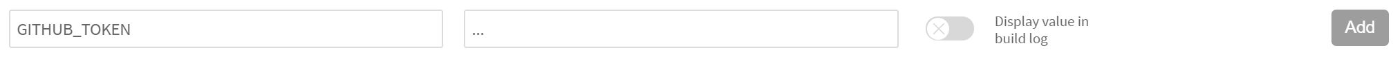 Environment Variables, name a variable as GITHUB_TOKEN or GITHUB_DEPLOY_KEY depending on your earlier choice and paste the token/key into its value field; then click Add.Display value in build log is switched off for security reasons: