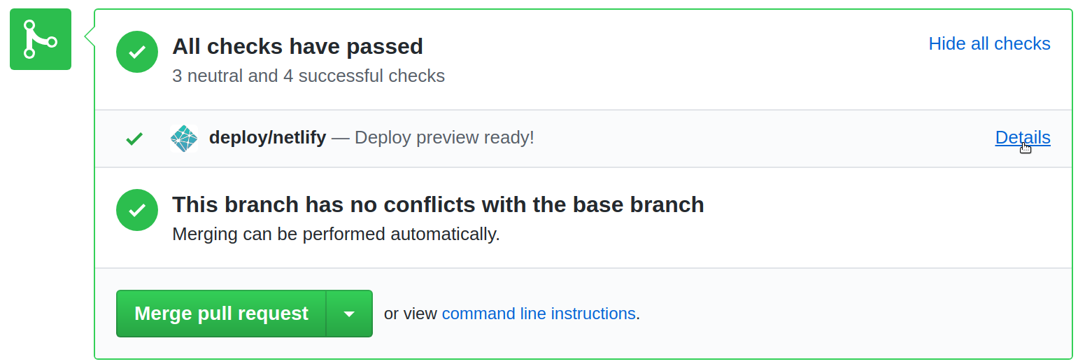 After setting up Netlify for your repo containing RepoSense settings, when a PR comes in to that repo to update any setting, you can scroll down the PR page and in All checks have passed, click on the Details beside deploy/netlify — Deploy preview ready! to see a preview of the report as per the changes in the PR.