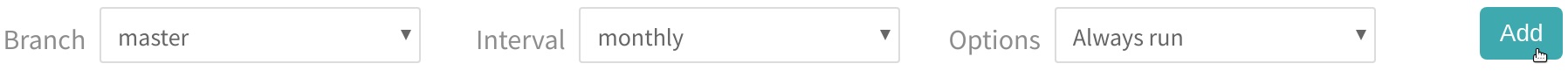 More options on the right then access Settings.Cron Jobs, choose master for Branch, Always run for Options and pick an Interval of your choice; then click Add.